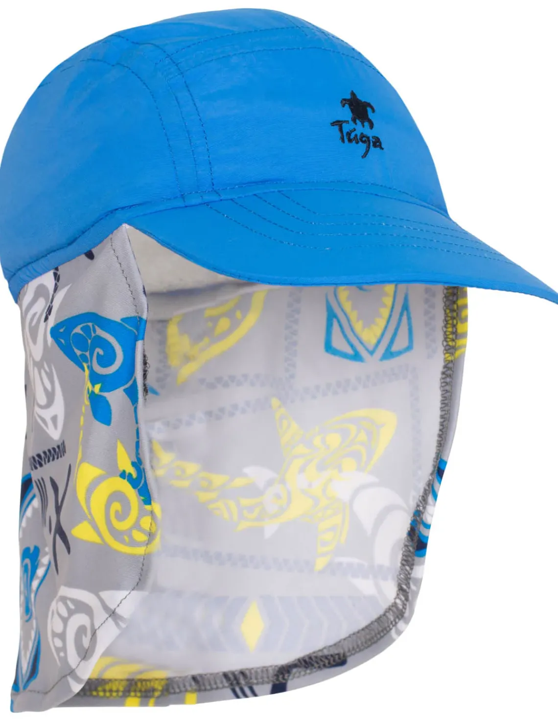 Our Tuga legionnaire boys hats are another great stylish option to protect kids from the sun. Strong and flexible brim to shade the face with a generously sized lightweight neck flap to protect ears and neck. Built-in sweat band is added for comfort and moisture wicking. Partial elastic on the back of the cap for added comfort and ease of fit. Tuga logo embroidered at front. These hats look terrific paired with matching Tuga swimwear. Available for baby, infants, toddlers and boys.