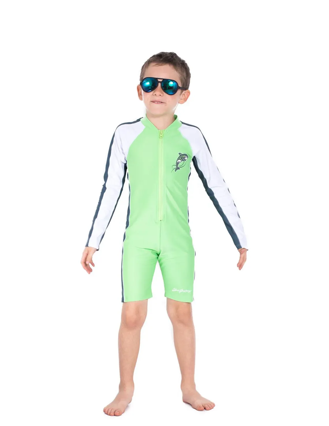– Snaps for sizes 3/6 months up to 2/3 years. Cool design at chest and SunBusters logo at front