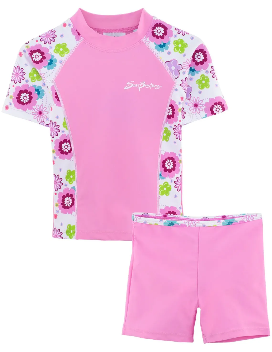 – Matching scoop swim shorts sit low on waist with elastic and printed waist band