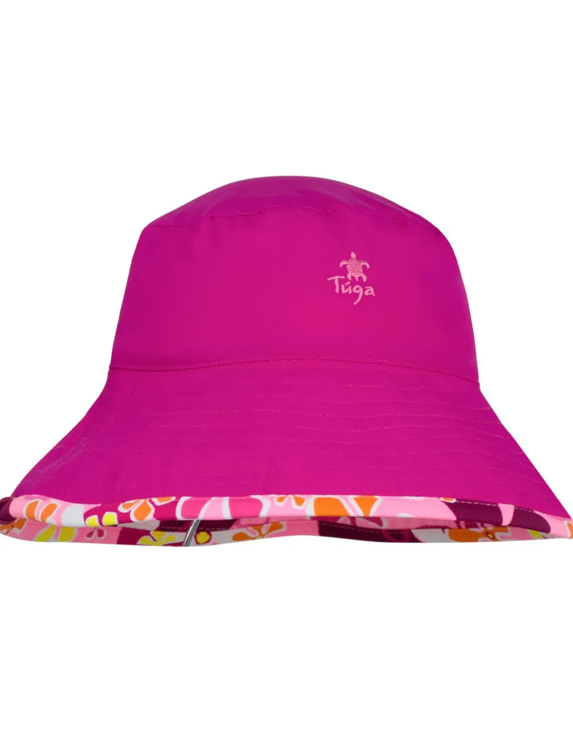 The Tuga reversible bucket hat for girls is designed to offer a great look and excellent sun protection from UVA + UVB sun rays. Kids hat designed with a wide brim to shade the neck, head and face. The brim for the small hats measures 3″ (inches) and for the medium/large is 3.5″ (inches). A removable and adjustable chin strap helps to improve fit in windy conditions and reversible for great versatility. Tuga logo embroidered on one side. Available for baby, infants, toddlers and girls.