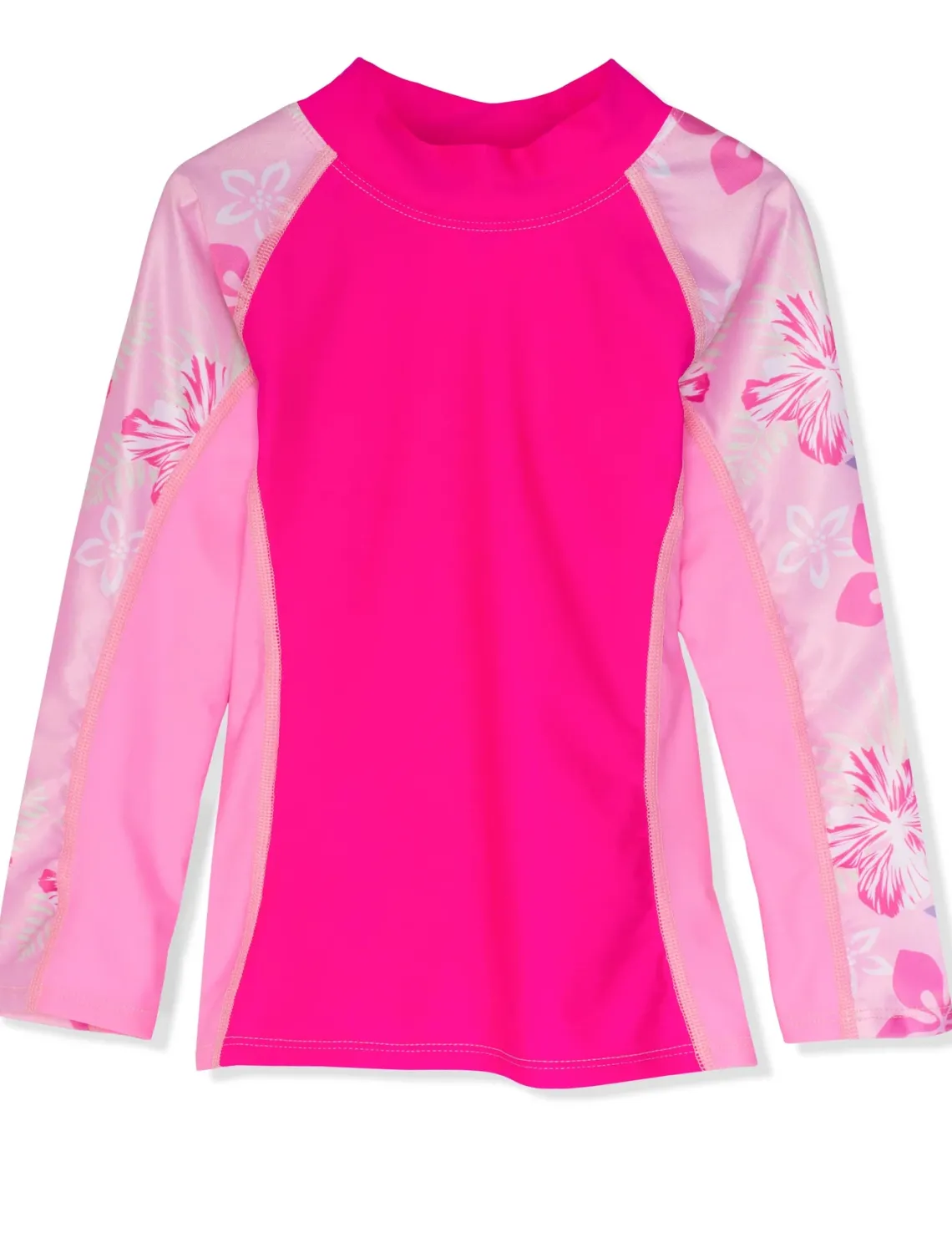 Our Shoreline girls rashguards are designed with an attractive solid and print combination to offer a fashion-oriented swim shirt popular with girls of all ages. All Tuga girls swim shirts are designed with a high neck style to offer the most sun protection. Match it up with our Tuga girl’s swim shorts and our sun hats! Available for toddler girls 4 years up to 14 years.
