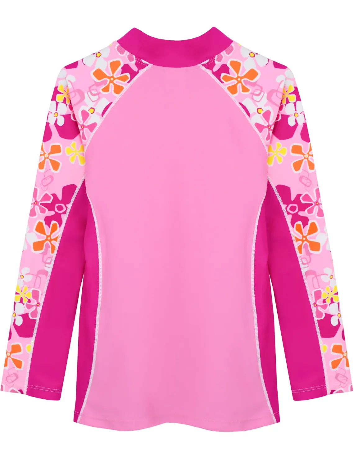 Our Shoreline girls rashguards are designed with an attractive solid and print combination to offer a fashion-oriented swim shirt popular with girls of all ages. All Tuga girls swim shirts are designed with a high neck style to offer the most sun protection. Match it up with our Tuga girl’s swim shorts, our swim diapers for the little ones and our sun hats! Available for toddler girls 4 years up to 14 years.