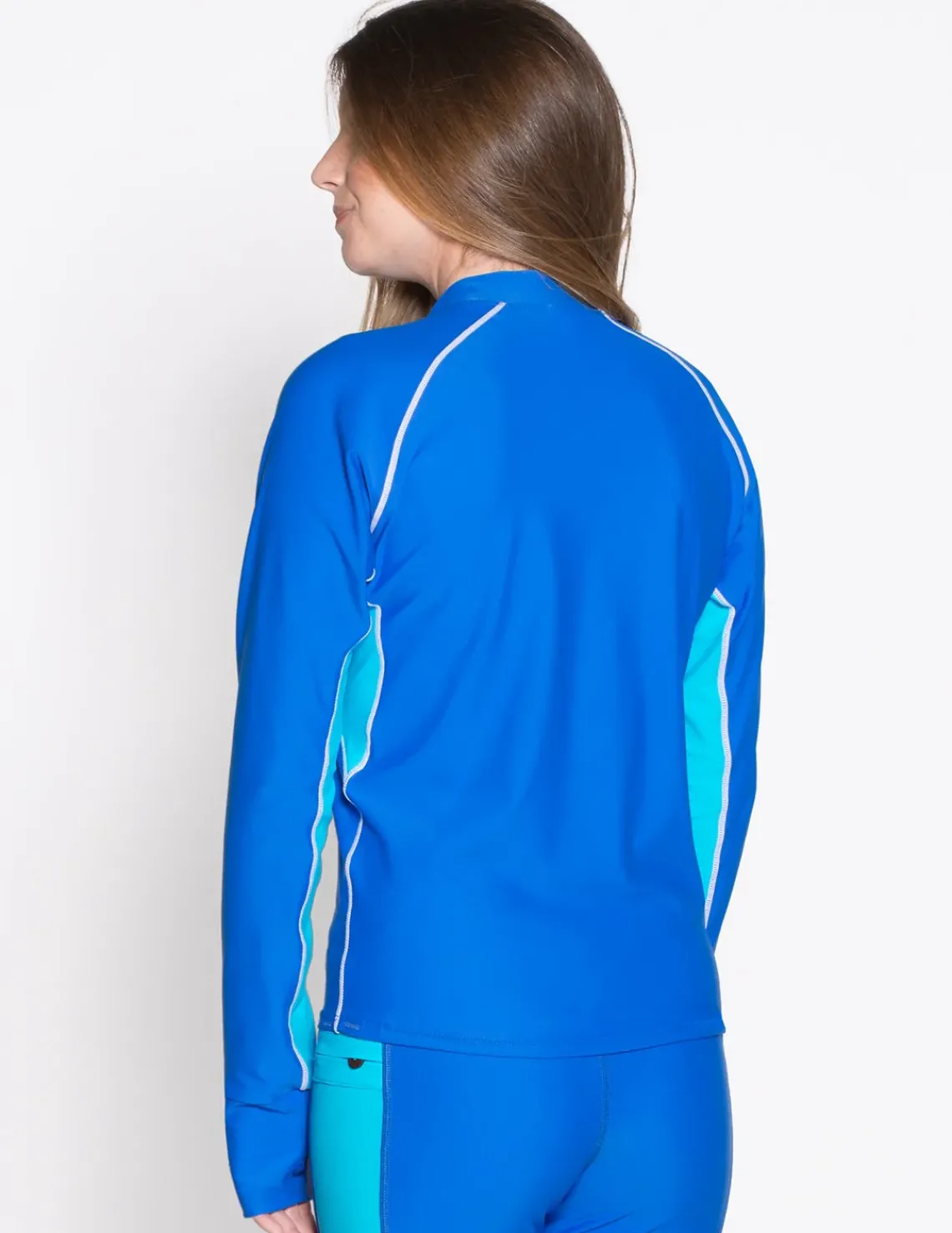 Perfectly designed collection for water activities from snorkeling to paddle boarding. Swim shirts with thumb hole cuffs to keep sleeves from riding up, a regular fit for an easy swim, and button holes at hem to easily attach to our Tuga snorkeling swim bottoms. Swim jammer shorts are fitted, lined, and adjustable tie at waist. Swim leggings are fitted, with stirrups, and ergonomically placed seams. Both designed with coconut button shells to keep Tuga snorkel tops from riding up. Also available for kids!